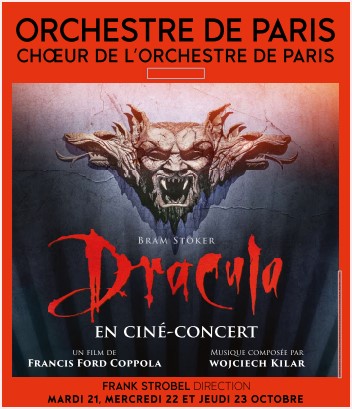 Frissons garantis à la Philharmonie de Paris : pour la toute première fois en France, Dracula de Francis Ford Coppola se déploie en ciné-concert les 21, 22 et 23 octobre 2025 à 20h ! L’Orchestre de Paris, accompagné de ses chœurs et dirigé par Frank Strobel, fera vibrer la partition envoûtante de Wojciech Kilar, entre menace et sensualité. Trois soirées pour se laisser envoûter par la musique… et par le plus célèbre des vampires.