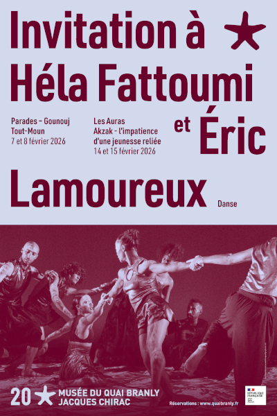 En février 2026, le musée du quai Branly – Jacques Chirac consacre deux week-ends Carte blanche à Héla Fattoumi et Éric Lamoureux, chorégraphes à la tête de Viadance (Centre chorégraphique national de Bourgogne-Franche-Comté). Après Bintou Dembélé et Fouad Boussouf, le duo investit le plateau des collections et le théâtre Claude Lévi-Strauss avec une programmation mêlant danse, musique live et performances, nourrie par les notions de brassage, d’« identité-relation » et de mise en dialogue des imaginaires.