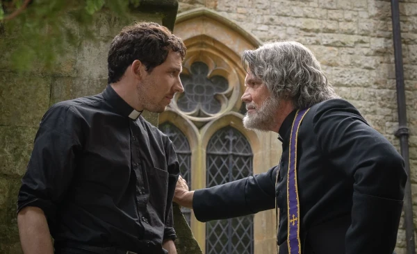 Alors que la franchise Knives Out est normalement centrée sur le personnage de Benoit Blanc, la longue introduction incarnée par l’excellent Josh O’Connor, un peu trop bavarde et dépourvue d’action, peut perdre le spectateur. Ce jeune curé, passionné par l’aide qu’il peut apporter aux croyants, se débat dans un milieu où la foi a été remplacée par un mysticisme exacerbé et un véritable culte de la personnalité.
