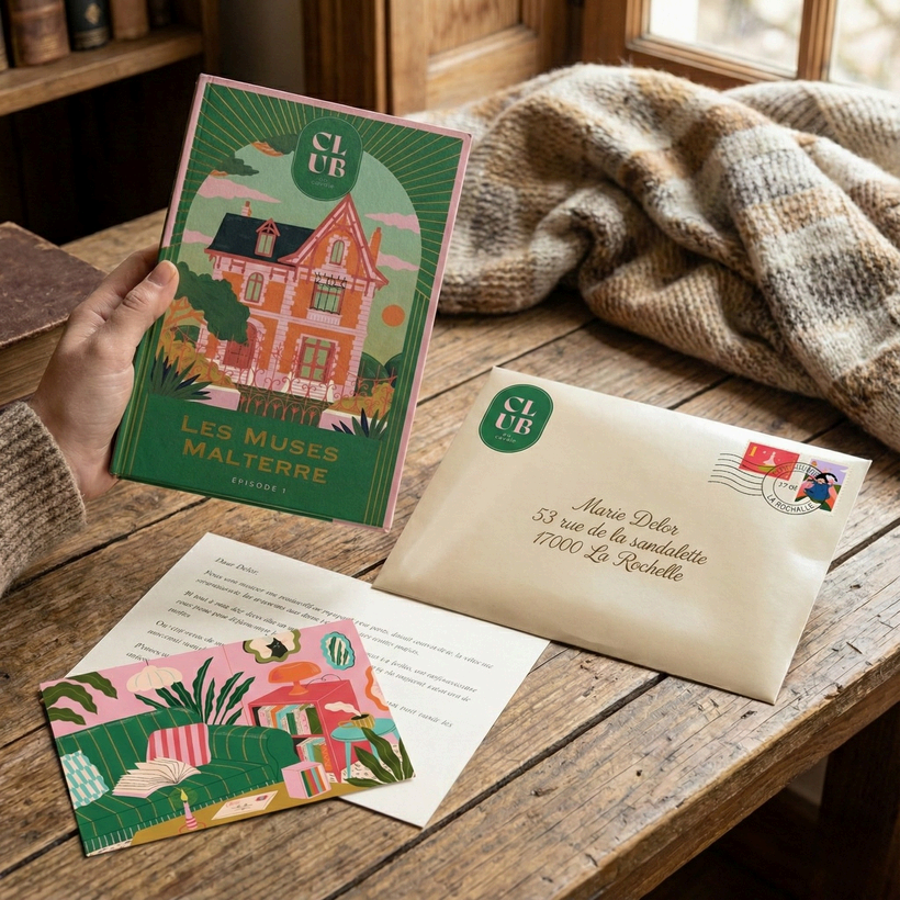 Les éditions En Cavale proposent avec Club une expérience aussi originale que séduisante : un roman à suspense livré… par courrier postal. Tous les quinze jours, le lecteur reçoit dans sa boîte aux lettres un nouvel épisode de l’histoire, pour une immersion progressive qui s’étend sur trois mois.